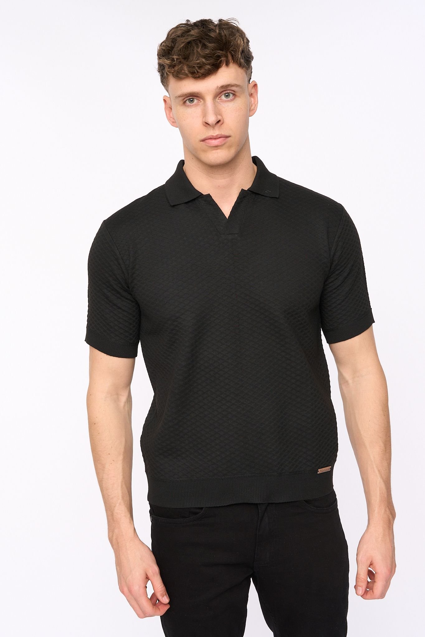 The Duck and Cover Black Textured Knit Polo with Buttonless Neck is ideal for casual, everyday, work.