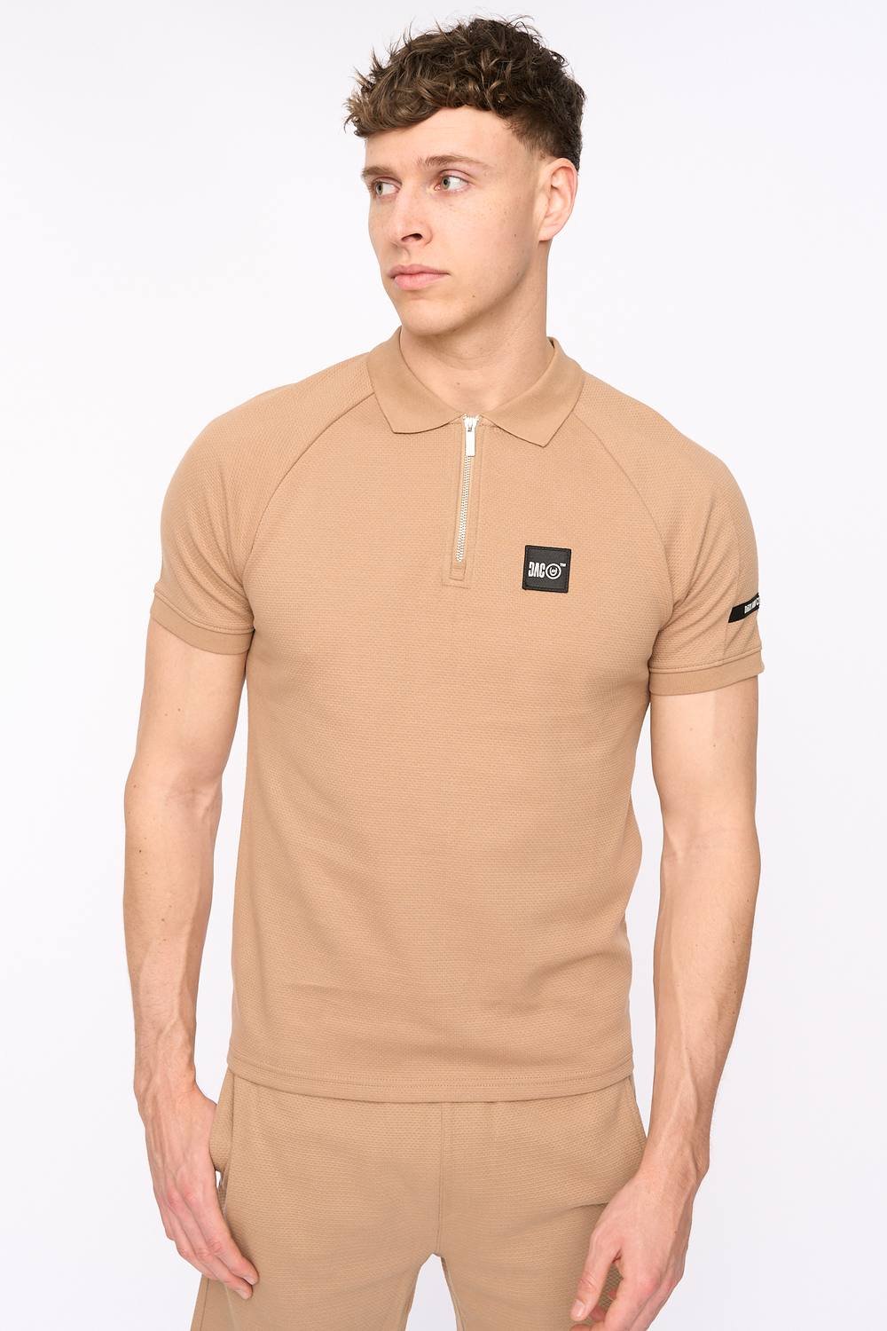 The Duck and Cover Stone Modern Zip Polo with Raglan Sleeves is made from cotton.