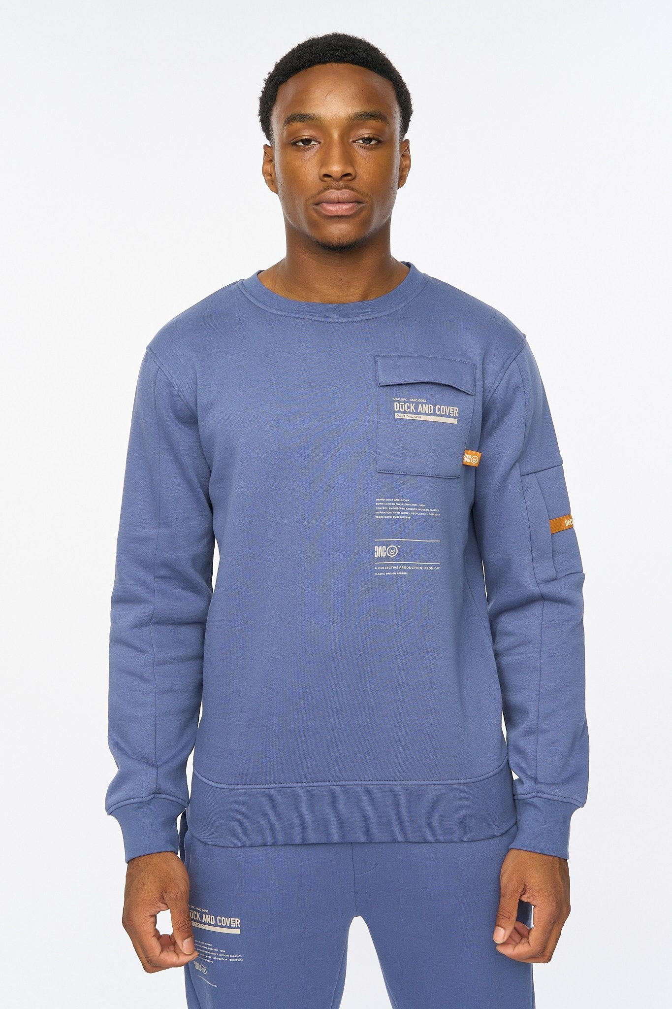 The Duck&Cover Blue Carbon Fleece Utility Sweatshirt is ideal for casual, activewear.