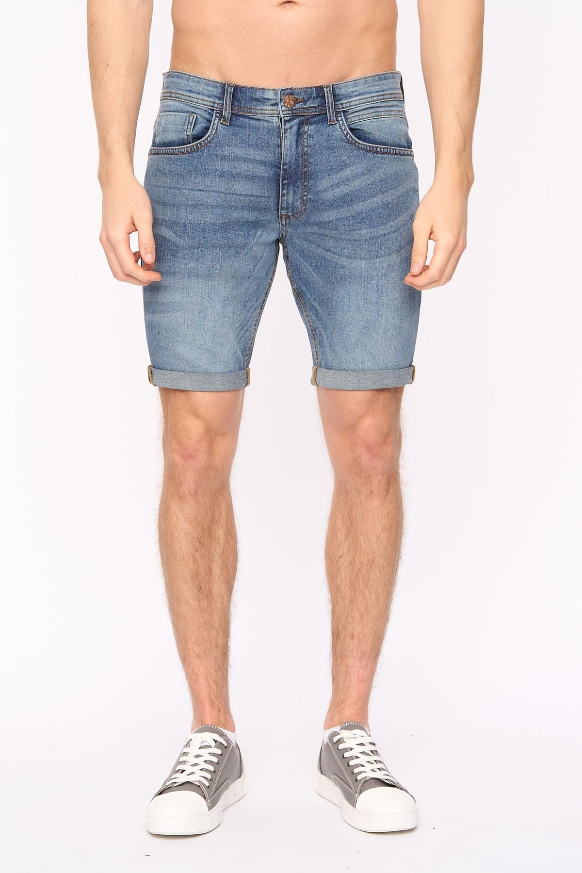 The Duck&Cover Mid Blue Denim Shorts is available in sizes 32, 36.