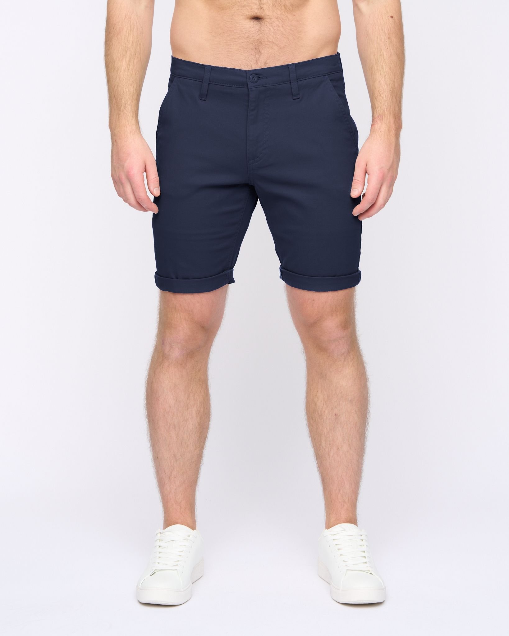 The Duck&Cover Navy Stretch Canvas Chino Shorts is available in sizes 30, 32, 34.