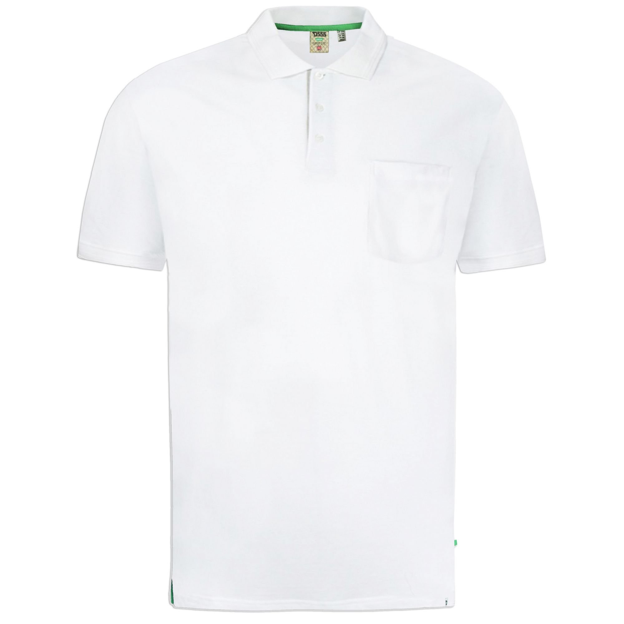 Classic men's polo shirt in pure white from Duke Clothing. Features a collared neckline, three-button placket, and short sleeves. Includes a chest pocket for convenience. A versatile wardrobe staple.
