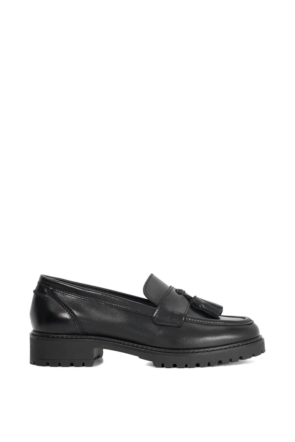 The Dune London Black Leather Loafers for Women is made from leather.