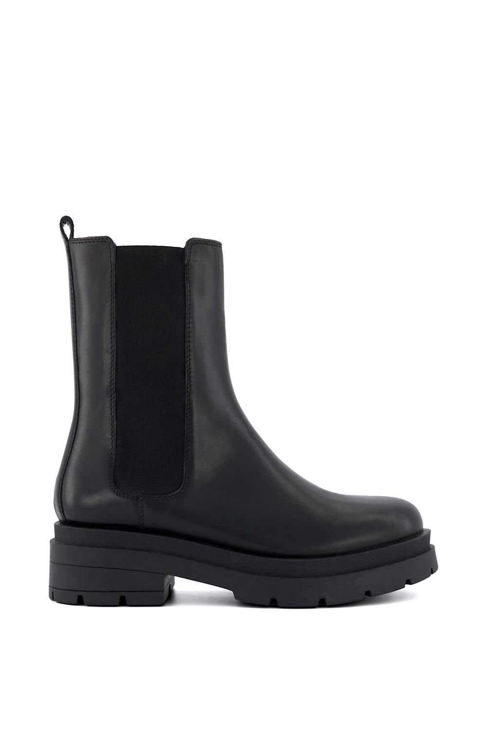 The Dune London Black Leather Chelsea Boots is available in sizes 3.
