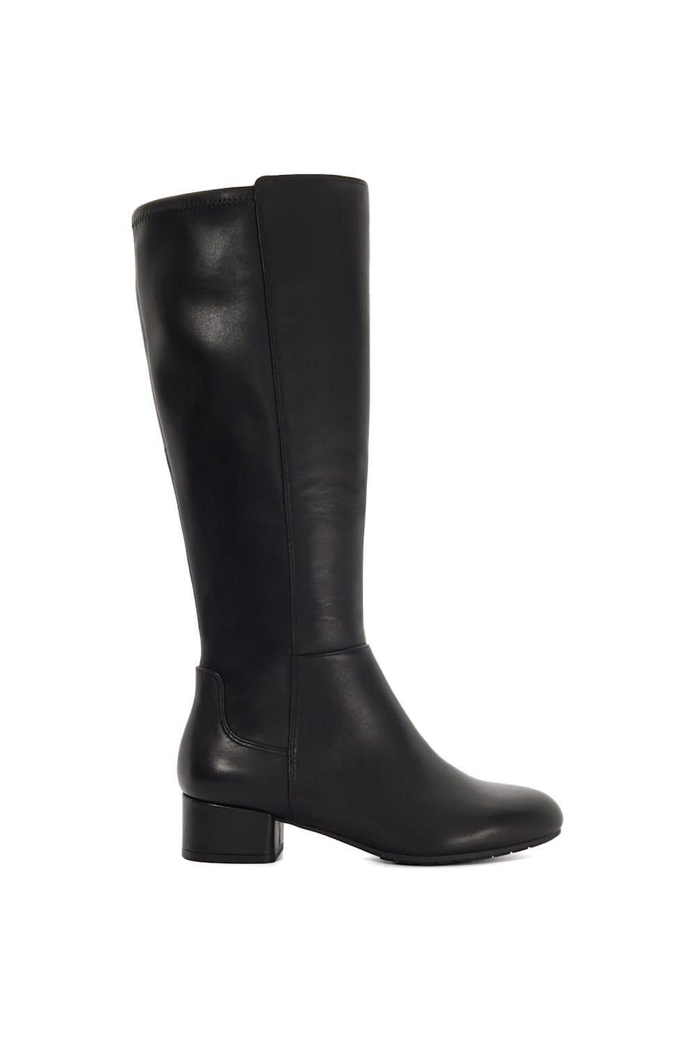 The Dune London Black Leather Knee-High Boots is ideal for casual, work, daytime.