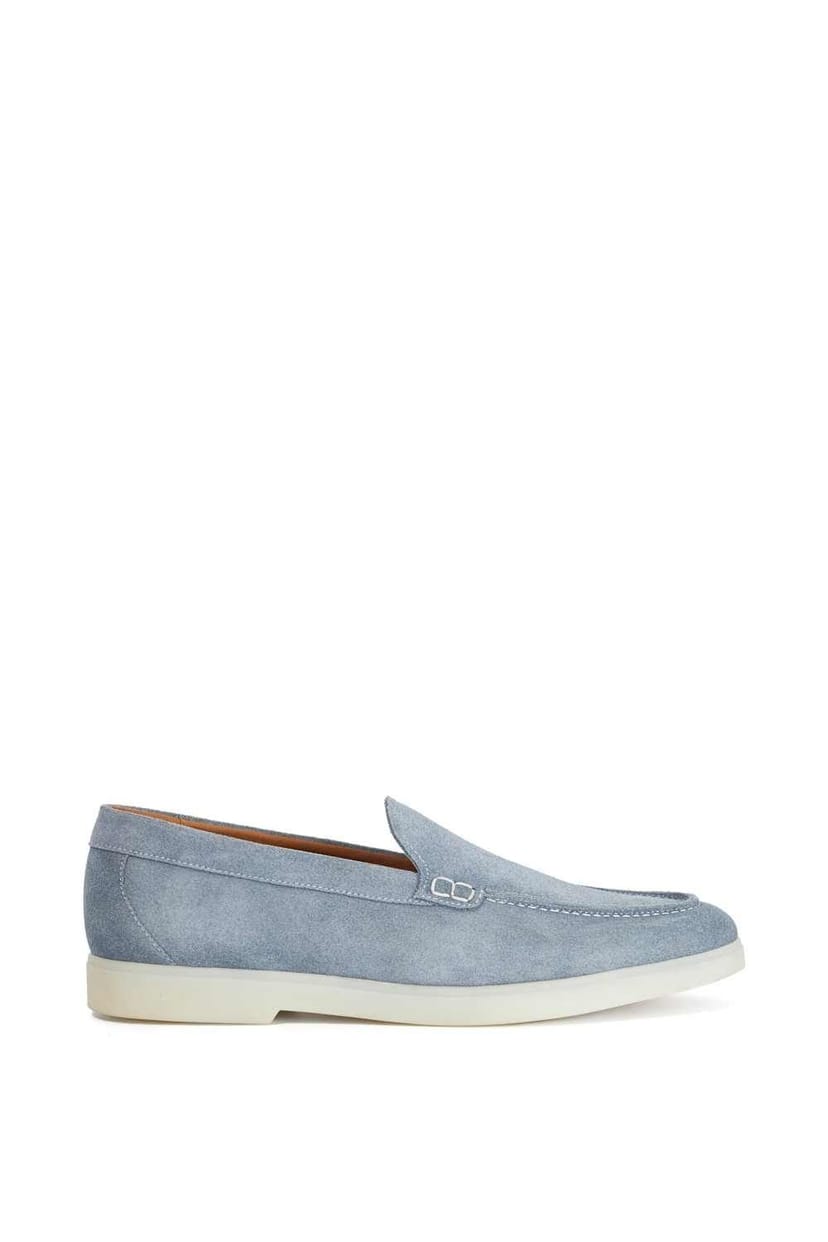 Stylish Dune London loafer in blue suede with a white sole. Designed for effortless wear, it seamlessly transitions between smart and casual looks.