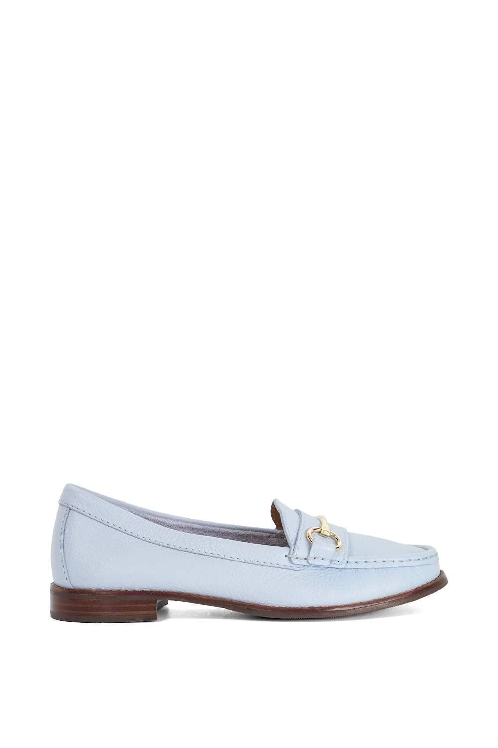 The Dune London Blue Leather Penny Loafers is available in sizes 3, 4, 5, 6, 7.