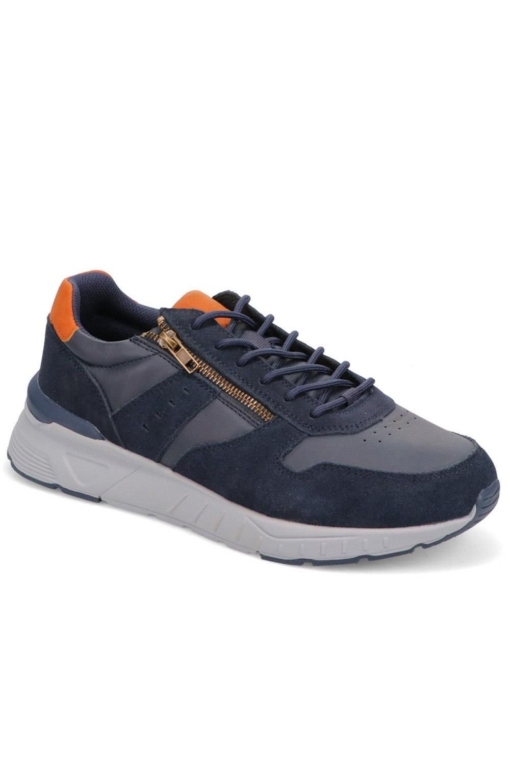 Stylish navy blue suede casual trainers with orange accents. Featuring a lace and zip fastening for easy wear and a removable memory foam insole for all-day comfort. Perfect for everyday use.