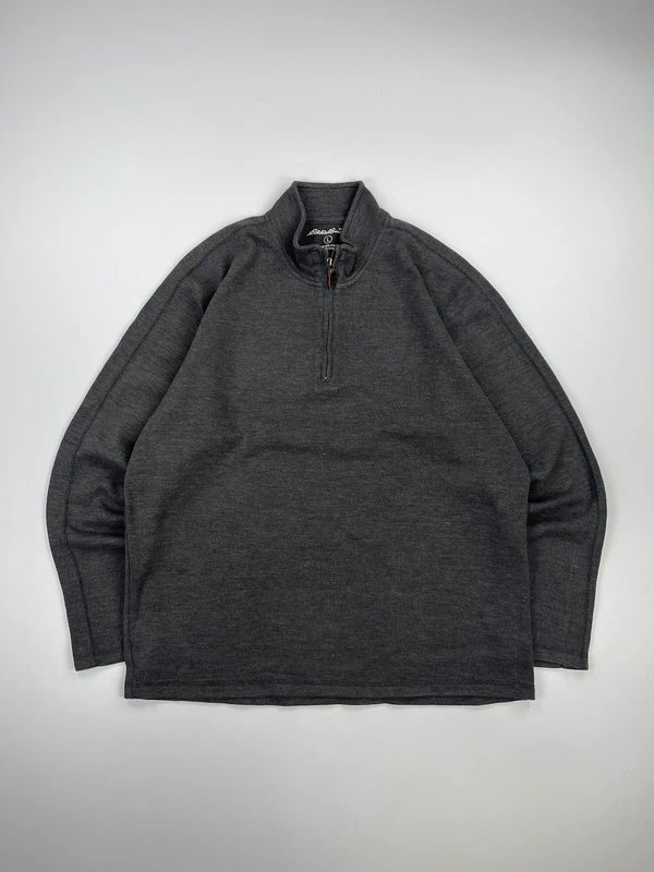 The Eddie Bauer Grey Quarter Zip Knitted Jumper is available in sizes L.