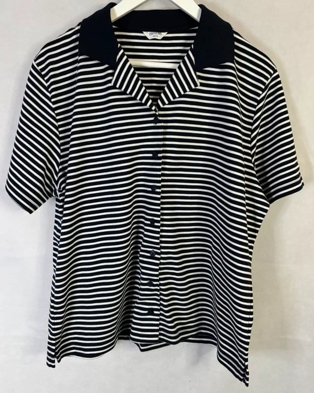 The Editions Black & White Striped Polo Shirt – Size 18/20 is available in sizes L.