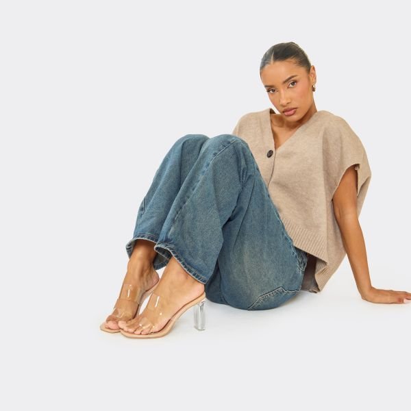 Nude Faux Leather Block Heel Mule with Double Clear Perspex Straps — perfect for versatile day-to-night styles. Pair with mini dresses or tailored trousers for a chic, on-trend look. Crafted from sleek faux leather with minimalist design and block heel for added height.