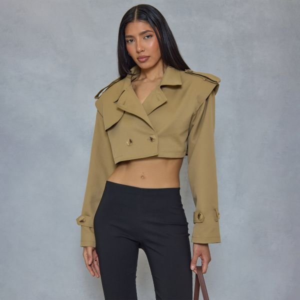 The EGO Beige Cropped Trench Coat is ideal for casual, business, smart-casual.