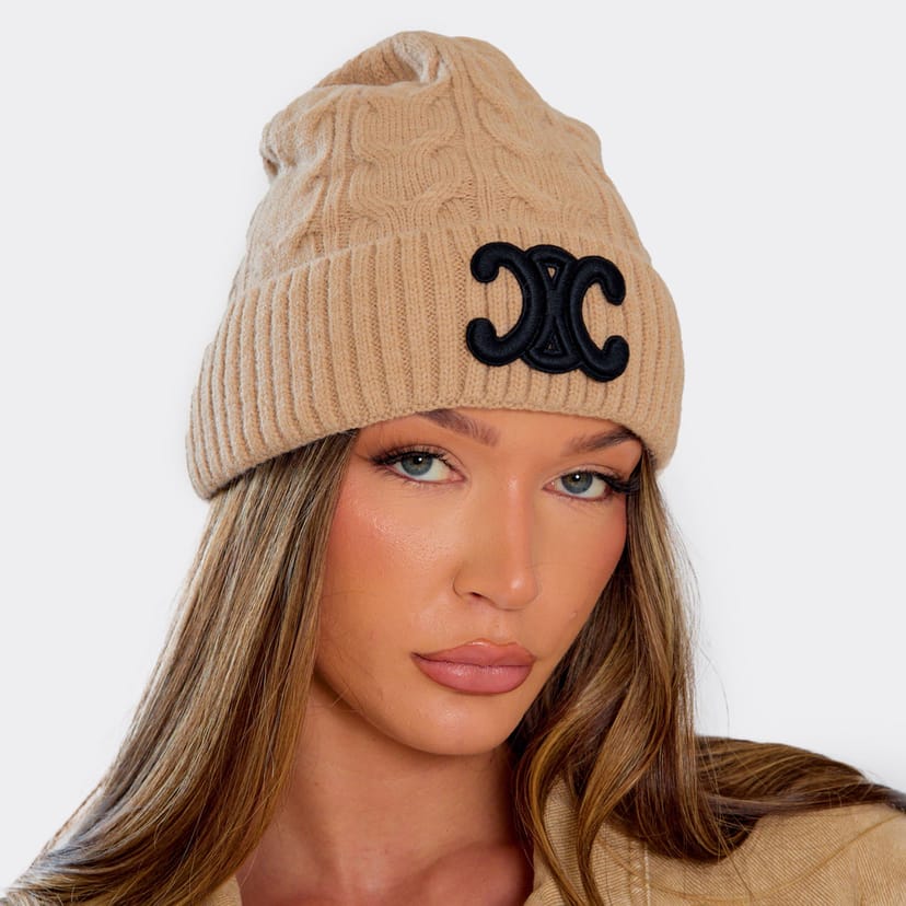 View EGO (UK)'s returns policyChic and cosy, this beige cable knit beanie hat from EGO features a logo detail for a stylish touch. Perfect for cold-weather vibes.
