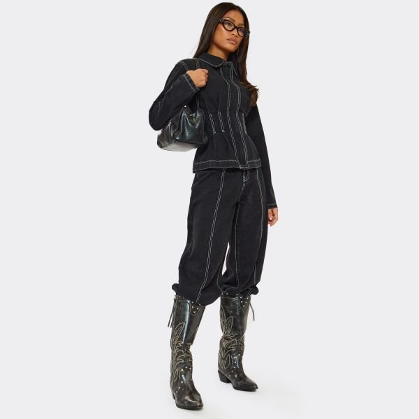 The EGO Western Cowboy Boots with Stud Detail in Distressed Black is ideal for festival, casual.