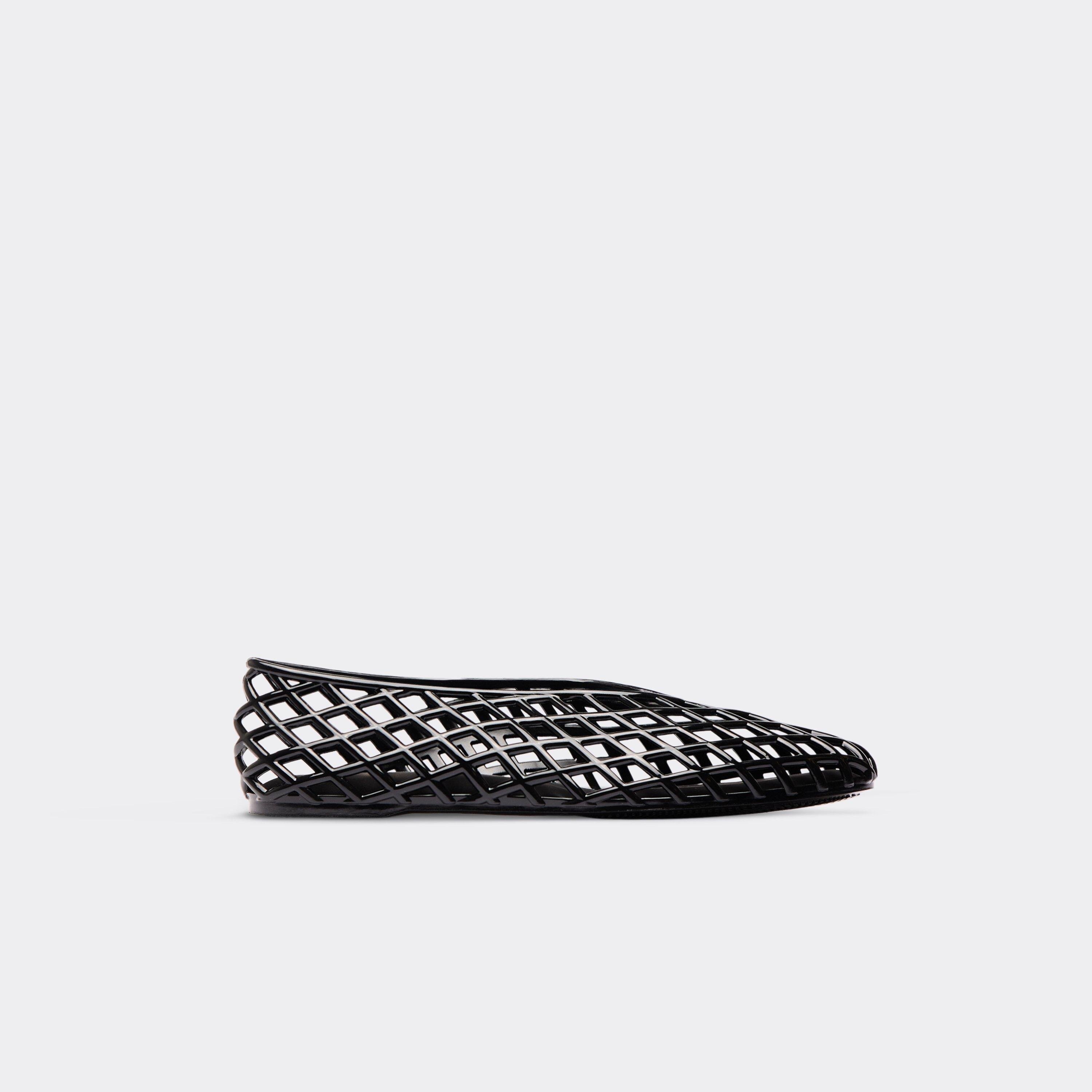 Refresh your off-duty look with these essential flats. Featuring black rubber material with woven and ballet pump detailing. Style with a pleated mini skirt and white socks for a total it-girl aesthetic.