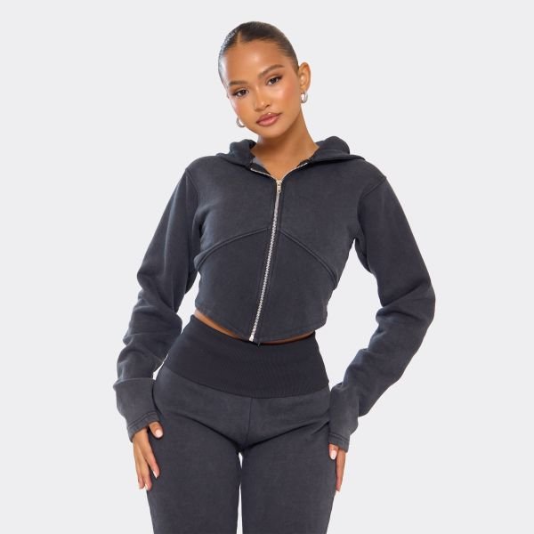 The EGO Modern Cropped Zip Up Hoodie in Washed Black is ideal for casual.