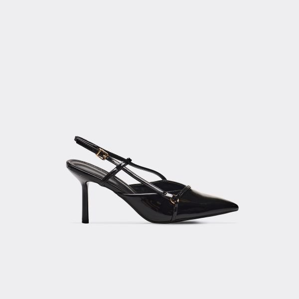 The EGO Ring Detail Pointed Toe Slingback Court Heel in Black is ideal for evening, party, date-night.