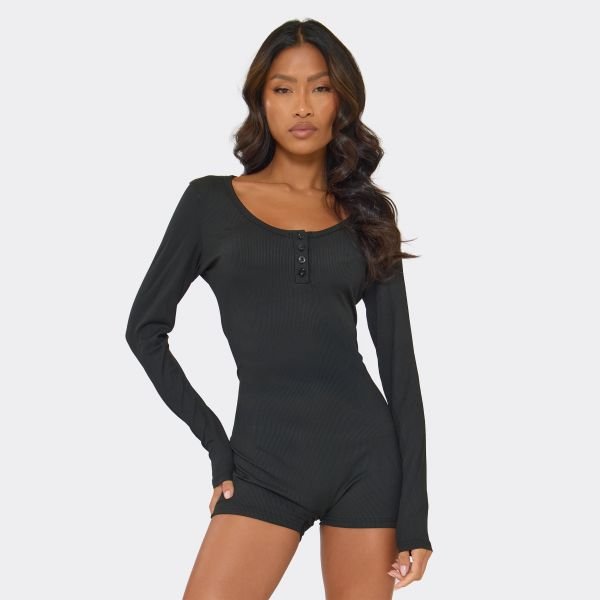 The EGO Black Long Sleeve Scoop Neck Pyjama Romper is ideal for casual, weekend, lounge.