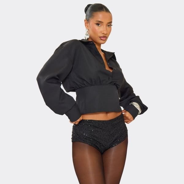 The EGO Low Rise Embellished Knicker Shorts in Black Sequin is ideal for evening, party.