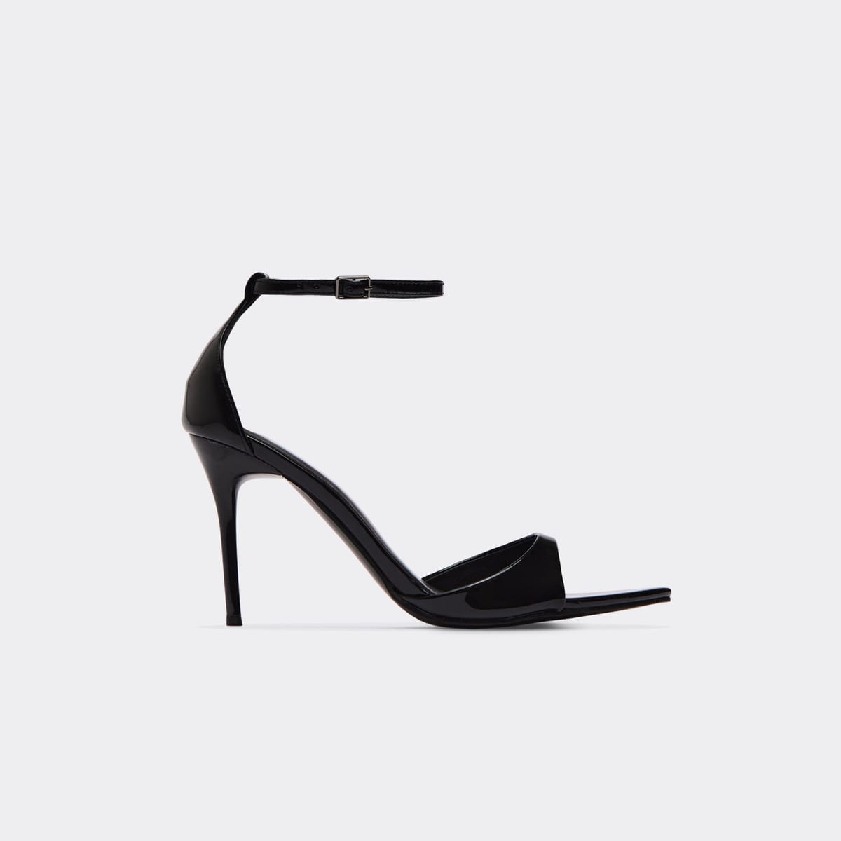 The EGO Black Patent Ankle Strap Stiletto Heels is available in sizes 3, 4, 5, 6, 7, 8.