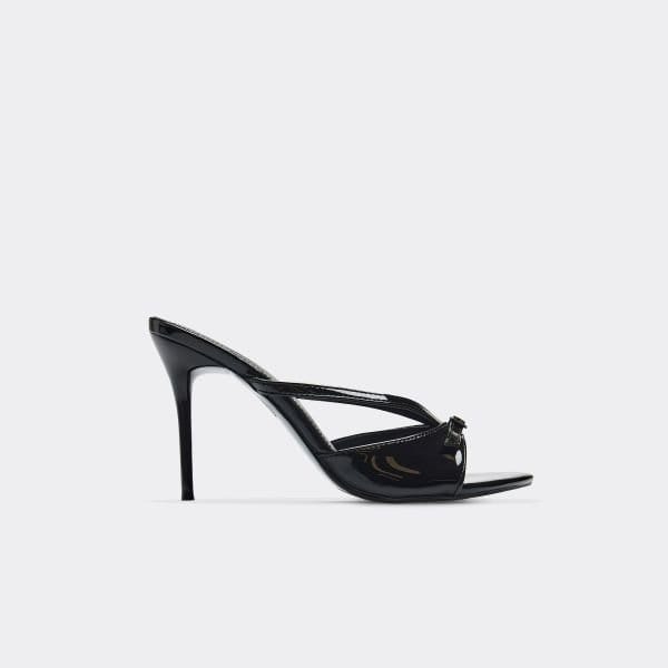 View EGO (UK)'s returns policyTake your shoe game to new heights, babe. Featuring black patent material with strappy buckle detailing, these stiletto mules are giving pure main character energy. The high-shine finish and edgy hardware make them a certified must-have for a killer night-out look.