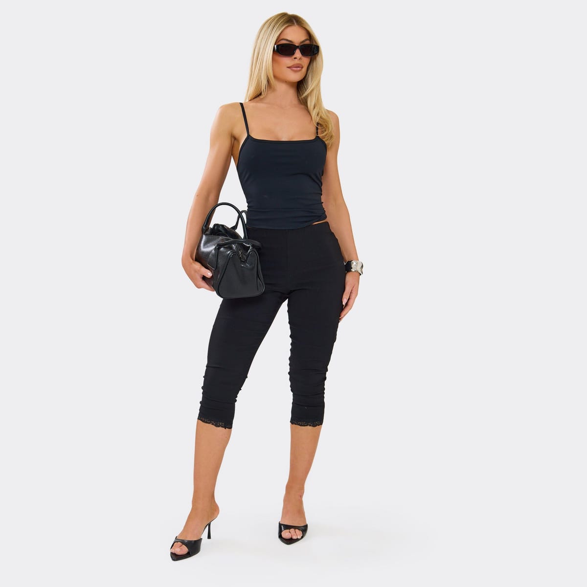 View EGO (UK)'s returns policyElevate your casual look with these black jersey capri leggings from EGO. Featuring delicate lace trim detailing and a flattering capri length, these leggings are perfect for pairing with a cropped hoodie and fresh trainers for a cool-girl vibe.