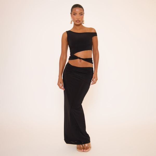 The EGO Ruched Detail Maxi Skirt in Black is ideal for evening, casual.