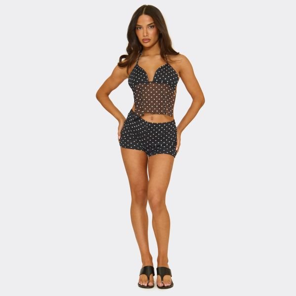 The EGO Mid Rise Shorts In Black Polka Dot is ideal for casual, weekend.