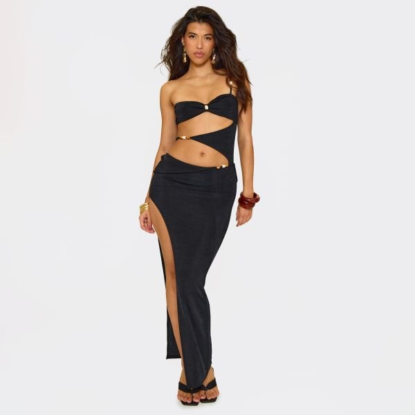 The EGO One Shoulder Cut Out Maxi Dress in Black is ideal for evening, party.