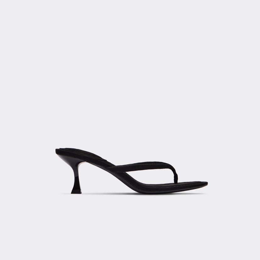 The EGO Black Faux Suede Thong Strap Low Heeled Mule is ideal for casual, everyday.