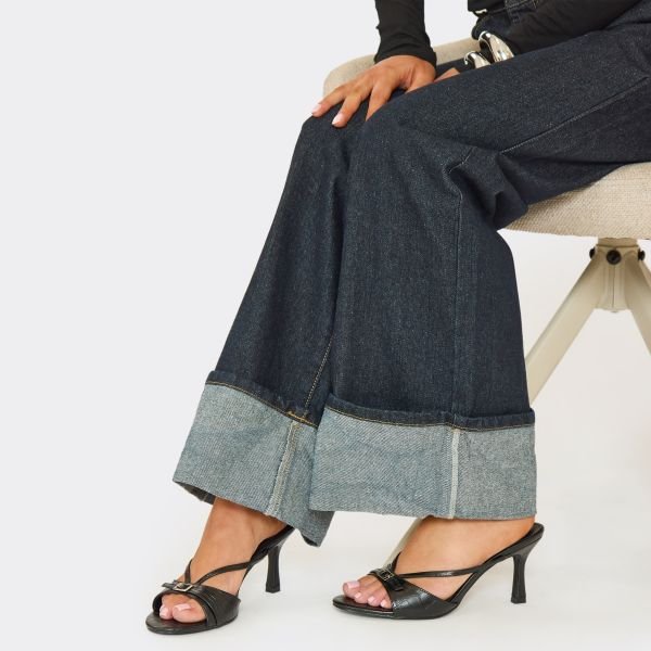 The EGO Strappy Buckle Detail Peep Toe Heeled Mule in Black is available in sizes 3, 4, 5, 6, 7, 8.