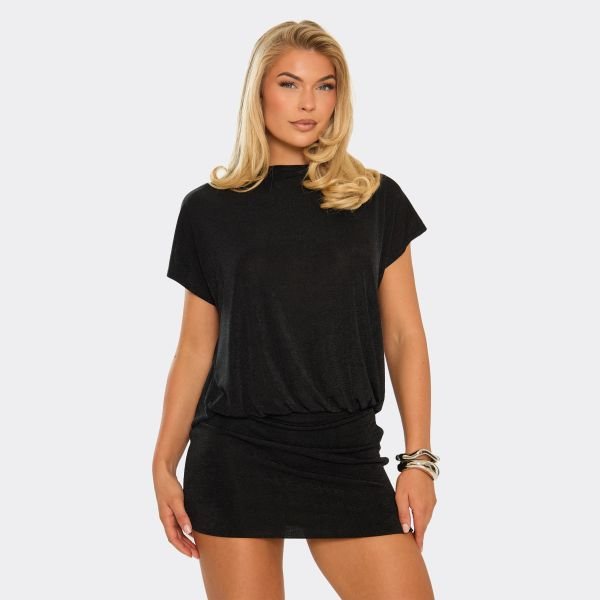 The EGO Black Short Sleeve Cowl Back Detail Top is ideal for date-night, evening, formal.