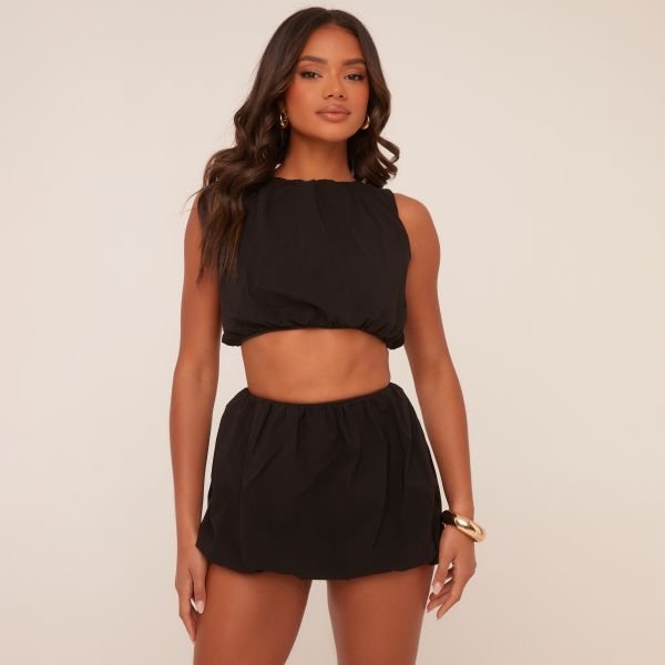 The EGO Sleeveless Crop Top And Puffball Mini Skirt Co-ord in Black is ideal for casual, evening.