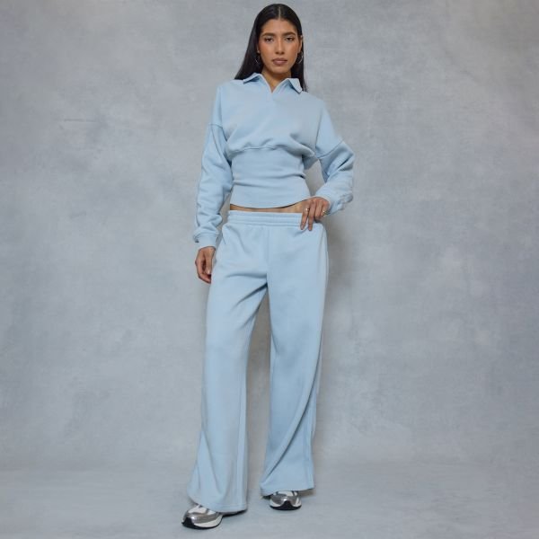 The EGO Chic Low Rise Wide Leg Joggers in Blue is ideal for casual, lounge.