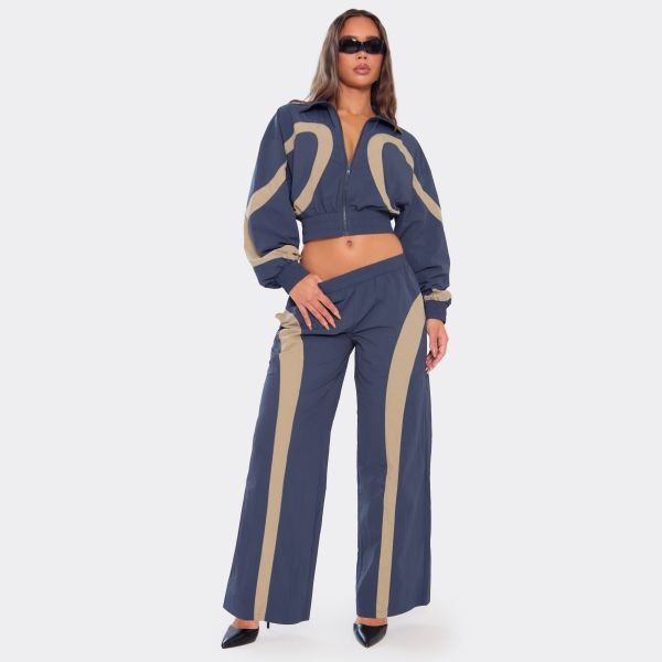 The EGO Mid Rise Contrast Panel Track Pants in Navy Shell is ideal for casual, lounge.
