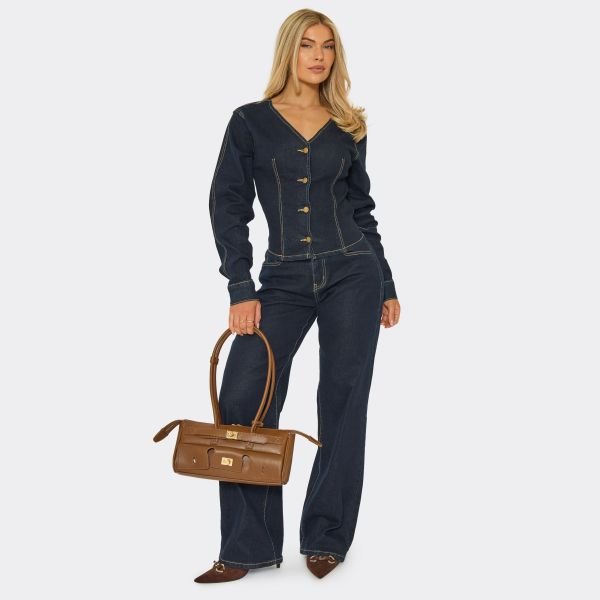 The EGO Mid Rise Seam Detail Wide Leg Jeans in Dark Indigo is ideal for casual, smart-casual.