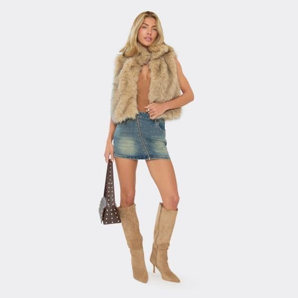 The EGO Mid Rise Zip Detail Mini Skirt in Washed Blue Denim is ideal for casual.