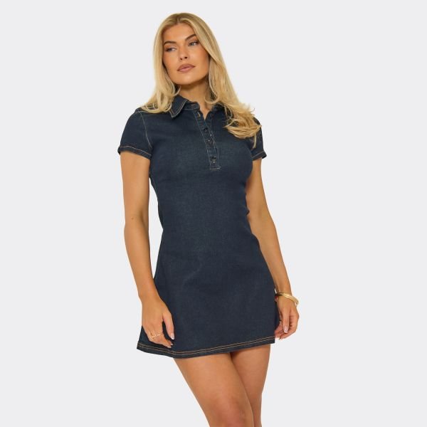 The EGO Denim Skater Mini Dress in Indigo is ideal for casual, evening, date-night.