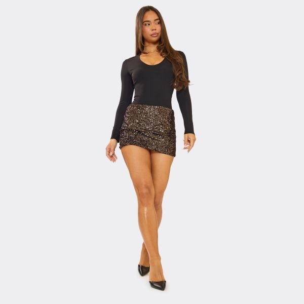 The EGO Bronze Sequin Mini Skirt with Mid-Rise is ideal for party, evening, night out.