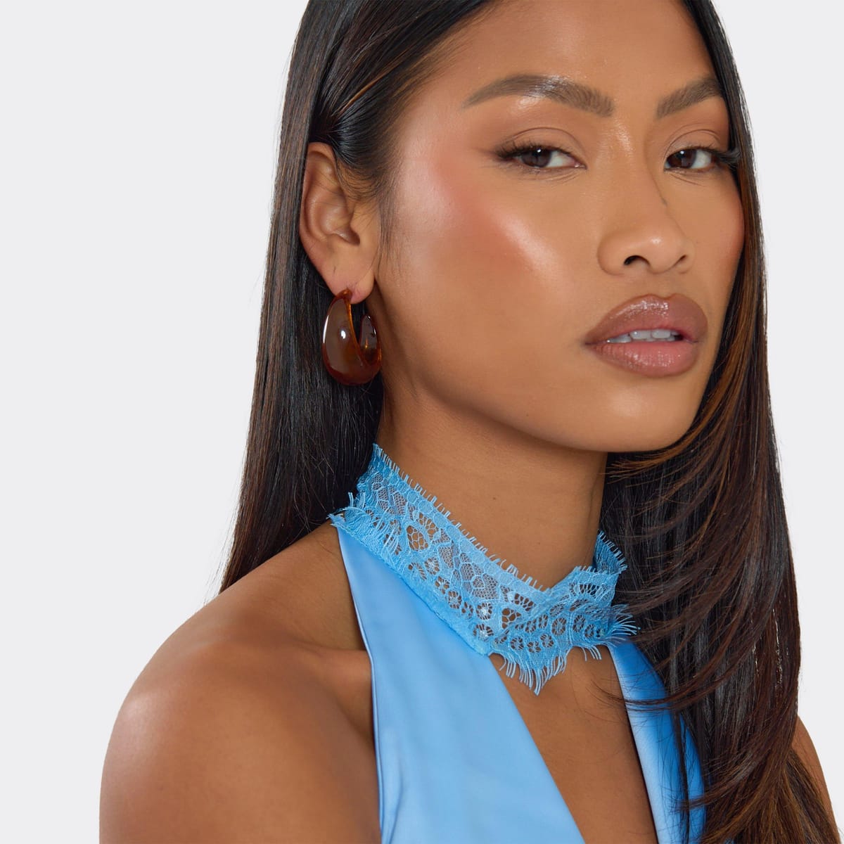 Elegant brown resin chunky hoop earrings with a glossy finish. Perfect for festival season, pair with a metallic bikini and denim shorts for a trendy look.
