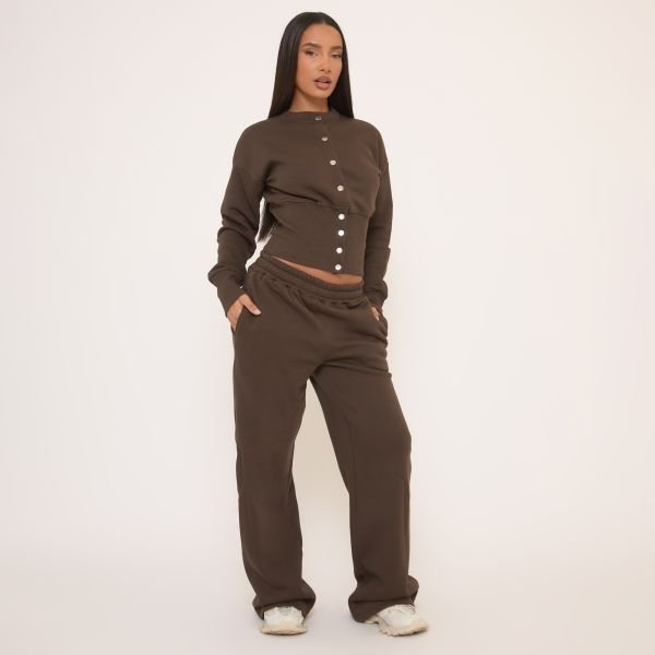 The EGO Elasticated Waist Wide Leg Joggers in Brown is ideal for casual, loungewear.