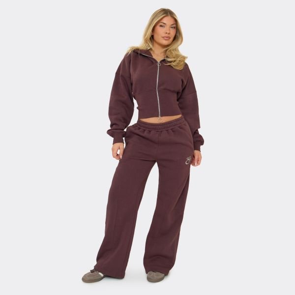 Chocolate Brown Logo Detail Wide Leg Joggers — perfect for relaxed days. Featuring embroidered logo details and a soft, comfortable wide-leg silhouette, these joggers offer a contemporary look for casual occasions. Crafted with a focus on comfort and style, they are ideal for lazy weekends, running errands, or casual meet-ups.