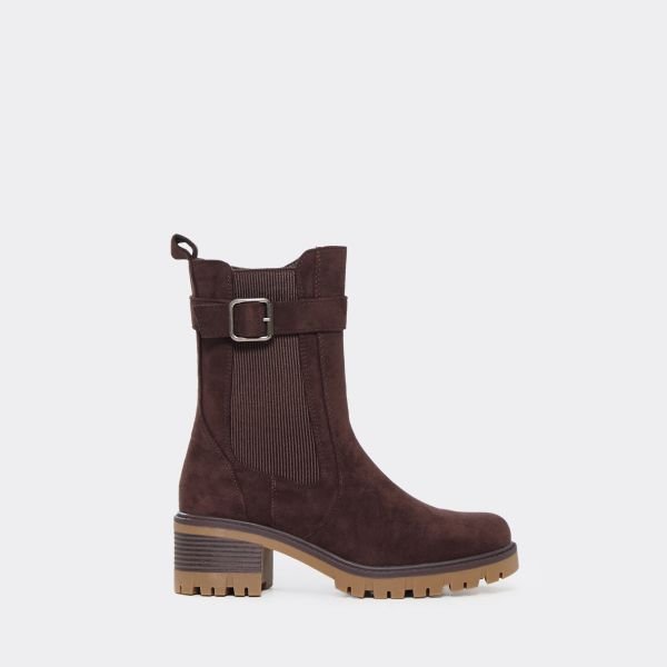 Bring casual-chic vibes, doll! Made in brown faux suede, these ankle boots feature side buckle detailing and an elasticated design, giving your outfit a bold, statement-ready finish.