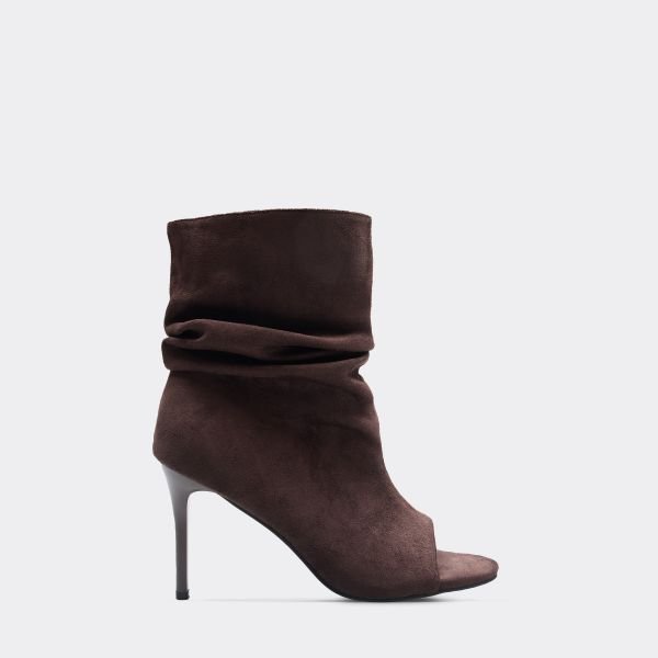 Brown Synthetic High Heel Booties — the epitome of elegant sophistication for women. Designed with a high-stiletto heel, these booties feature a wrap-around slouched design and a sleek pointed toe. Made from sturdy synthetic material, they offer durability and style. Perfect for adding a touch of glamour to any outfit.