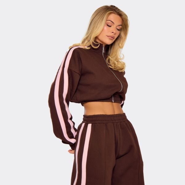 Kick off your autumn wardrobe with this stylish jacket that combines runway vibes with weekend comfort. The brown colour brings warmth, while the pink contrast stripe detailing adds a street-style attitude. Featuring a zip-up front, high neckline, and long sleeves, this jacket is perfect for layering over crisp jeans, tailored trousers, or even a dress.