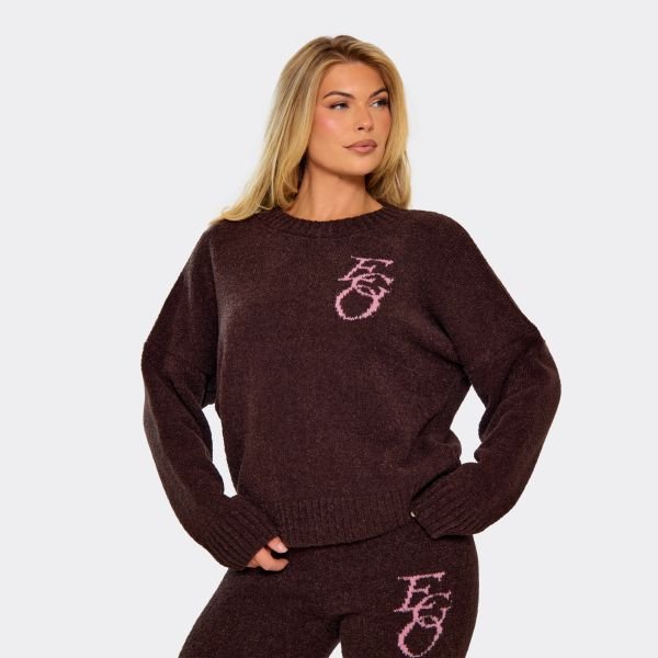 Designed with a brown hue, this cotton-blend knit jumper features pink EGO logo detailing. The crew neckline and long sleeves offer a cozy, Scandi-inspired oversized fit perfect for winter.