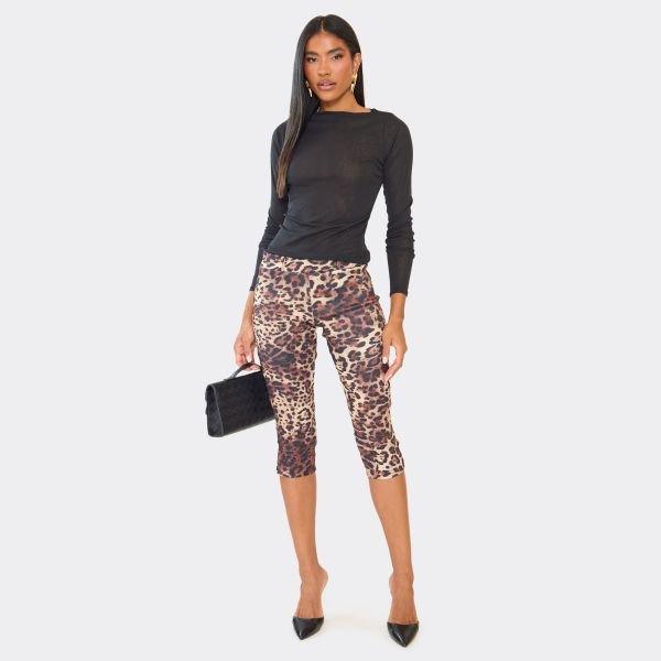The EGO Leopard Print Low Rise Capri Trousers in Brown is ideal for casual.