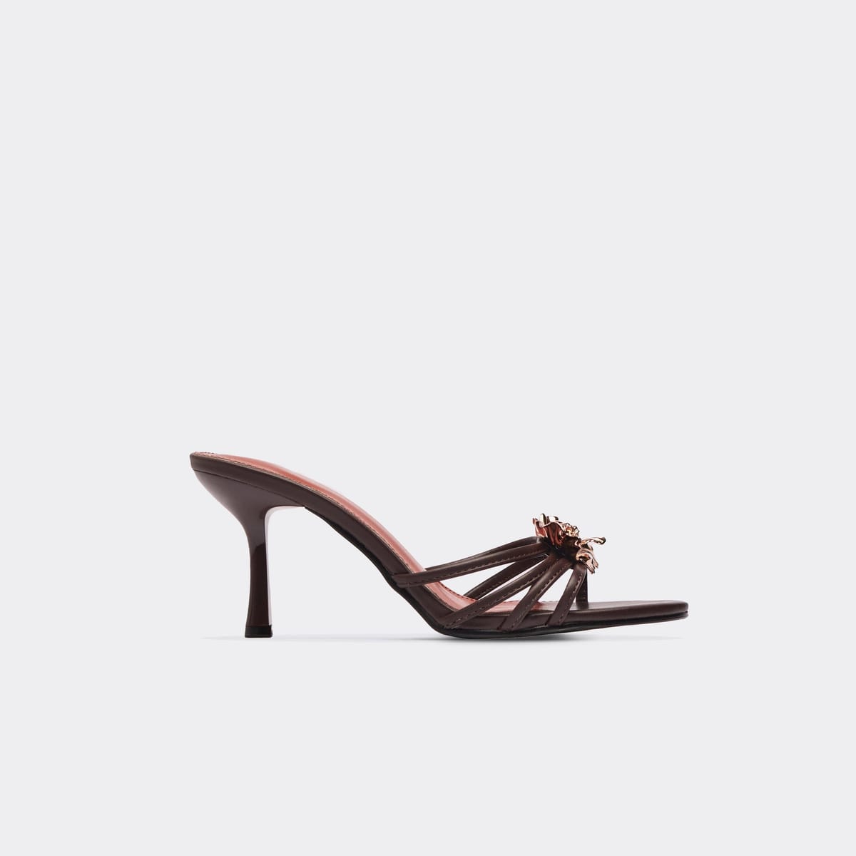 Step into spring with the ultimate it-girl vibe. Featuring brown faux leather material with floral and strappy detailing, these heeled mules are a total mood. Perfect for adding a touch of elegance to any outfit.