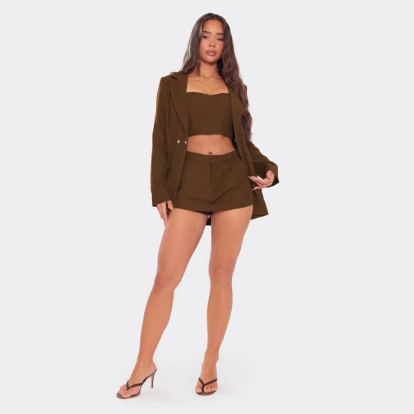 The EGO Chocolate Brown Mid Rise Tailored Mini Skort is ideal for casual, smart-casual, date-night.