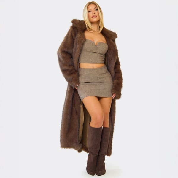 Elegant and weekend chic, this skirt features a brown wool look material with a mid waist fit. Perfect for statement autumn outfits.